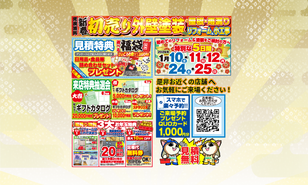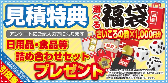 新春ならではの特別な ご来場特典・お見積り特典・ご成約特典 をご用意しています!