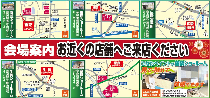 奈良県内のショールーム全5店舗で実施しますのでお近くの会場へお気軽にお越しください。