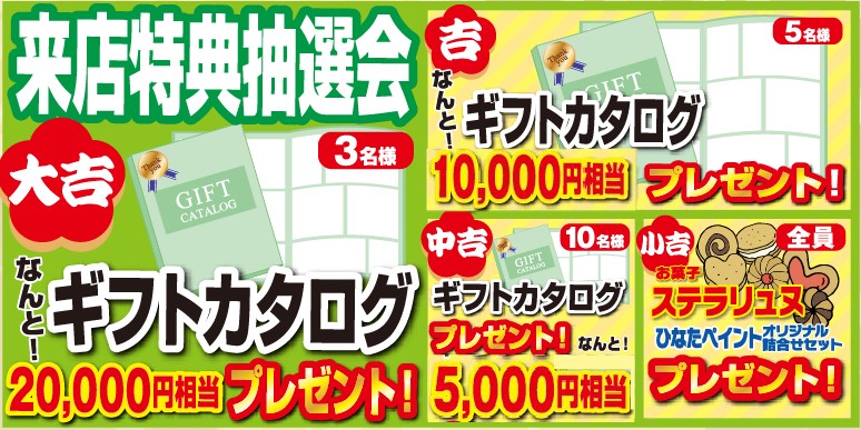 - 来店特典:ハズレなし抽選会