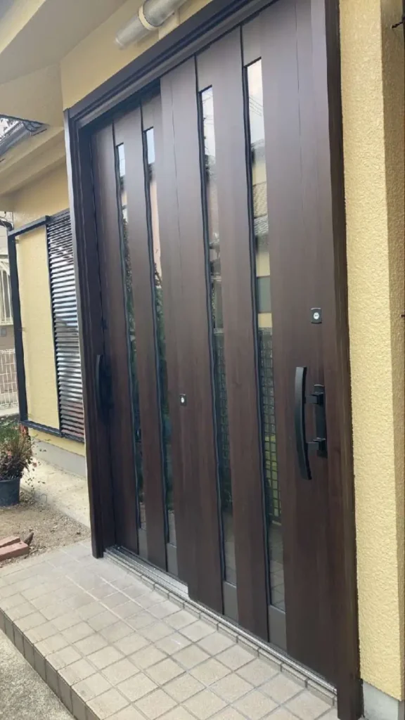 木目調の温かみあるブラウンカラーが、外壁の淡いベージュ色と調和しており、まるで新築のような印象!以前の格子デザインに比べると、よりモダンで洗練された外観になりました。それでいて和風住宅にもなじむ落ち着きがあり、まさに「現代の和モダンスタイル」にぴったりの仕上がりです。